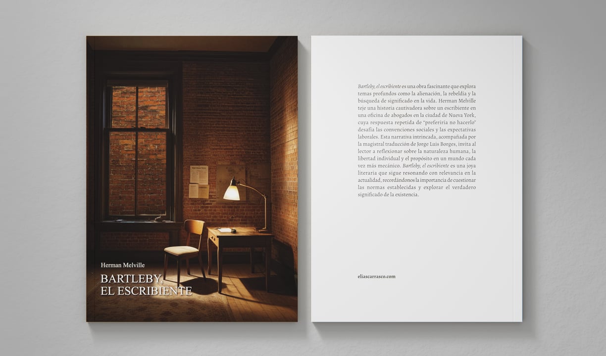 Herman Melville (1819-1891) es uno de los escritores estadounidenses más influyentes en la literatura contemporánea, este proyecto editorial de su cuento Bartleby, el escribiente traducido por el maestro Jorge Luis Borges nació de un trabajo universitario para acercar a los jóvenes diseñadores al mundo de la industria editorial.